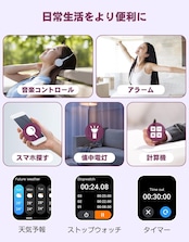 【大容量バッテリー&便利な機能満載】長い持ちのバッテリー搭載され、一回フル充電、3~5日間の連続使用も問題なく、待機時間は約30日間です。頻繁に充電する手間が省けます。付属の磁気充電ケーブルをスマートウォッチの充電端子に接続すると充電開始となります(実際の使用状況や環境によって電量持ち時間が異なります)通知やBluebooth通話などの基本的なスマートウォッチ機能に加え、例えば、音声アシスタント、おやすみモード、携帯検索、天気予報、懐中電灯、電卓、ゲーム、目覚まし時計、ストップウォッチ、SOSなど、日常生活をより快適にする機能が搭載されています。また遠隔操作もお任せください。ios9.0以上、android5.0以上のスマホに対応可能、さまざまシーンで使用できます!レディースでも、メンズでも、幅広い方にお使いいただけます。敬老の日、誕生日、父の日、母の日、新年、 クリスマスなどに適用なプレゼントとなります。