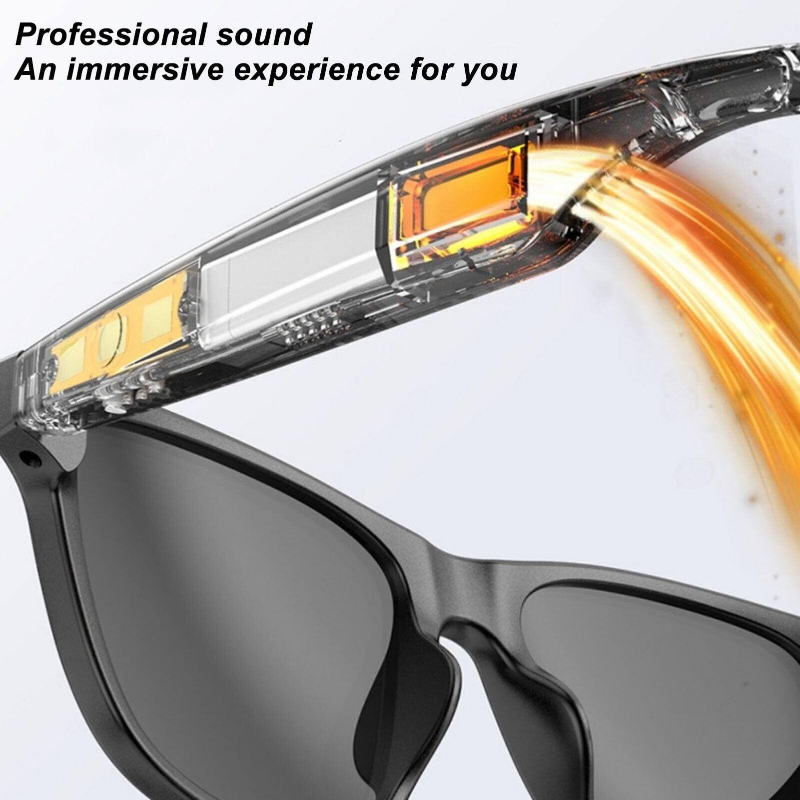 Bluetooth 接続: Bluetooth V5.3+EDR をサポートするこれらのメガネは、10 ~ 15 メートルの無線範囲を提供し、高速で安定した接続をします。マイクが内蔵されており、音声通話や音声コマンドが簡単に行えます。