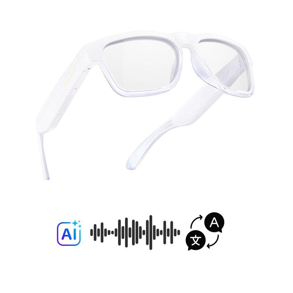 OhOサンシャインAI翻訳スマートグラス、bluetoothスピーカー付き、明るい黒の鏡枠とフォトクロミックレンズ付きで、屋外と屋内に適しています