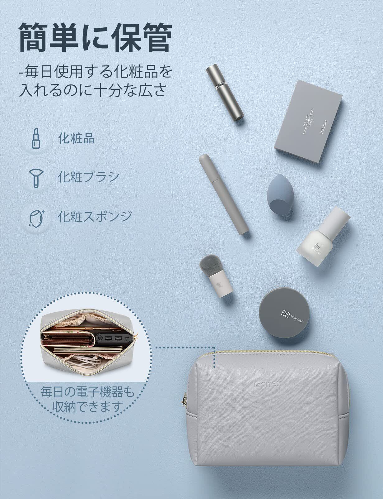 Gonex 化粧ポーチ メイクポーチ ミニ ポーチ おしゃれ コスメポーチ 機能的 大容量 防水 小物入れ 軽量 防水 出張 旅行 化粧バッグ ポーチ レディース (ライトグレー)