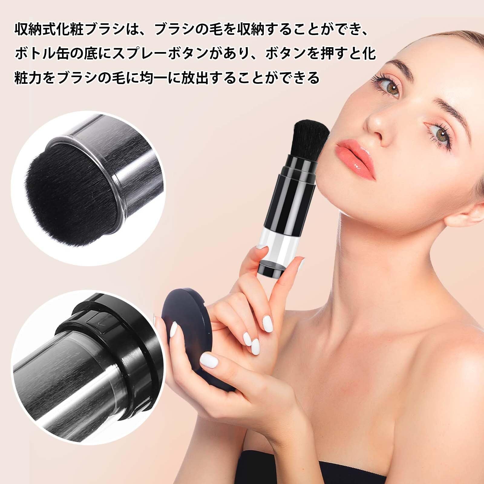 PAVIKEフェイスパウダー ブラシ ポータブルスプレー パウダーブラシ 格納式 プレス パウダー ブラシ 繰り返し充填可能、ボトルブラシ一体携帯スプレーブラシ、日常化粧用