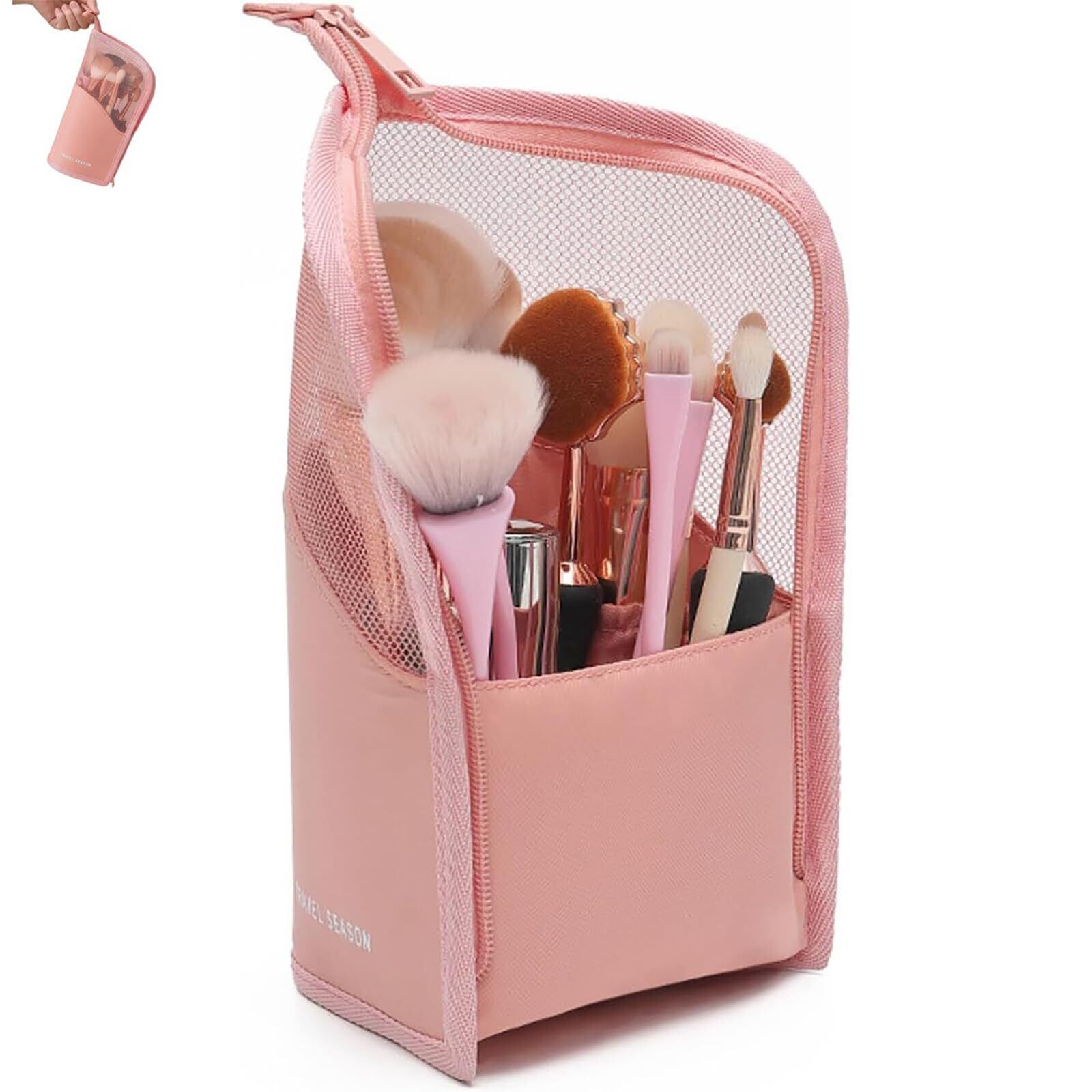 LUYING メイクブラシケース ブラシスタンド自立式 大容量 メイクブラシ収納 化粧筆収納 化粧筆 ブラシポーチ ペンケース 大容量 化粧ブラシホルダー ペン立てペンケース 小物入れ 収納ボックス 多機能 ックス 出張旅行 収納 (ピンク)