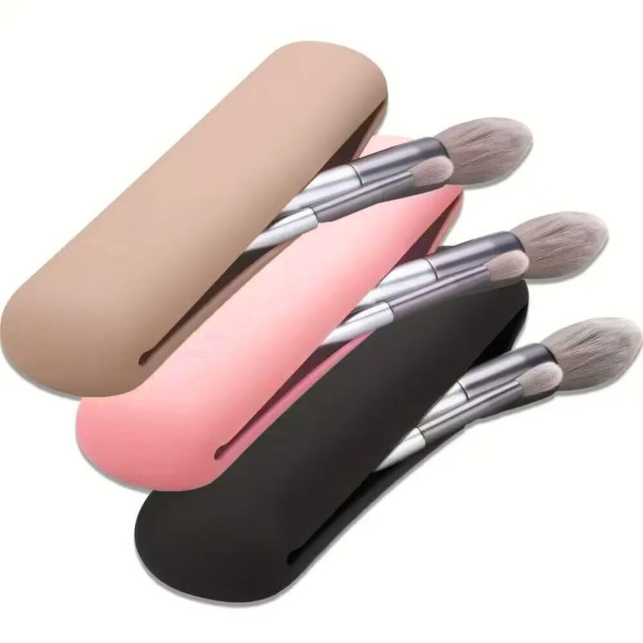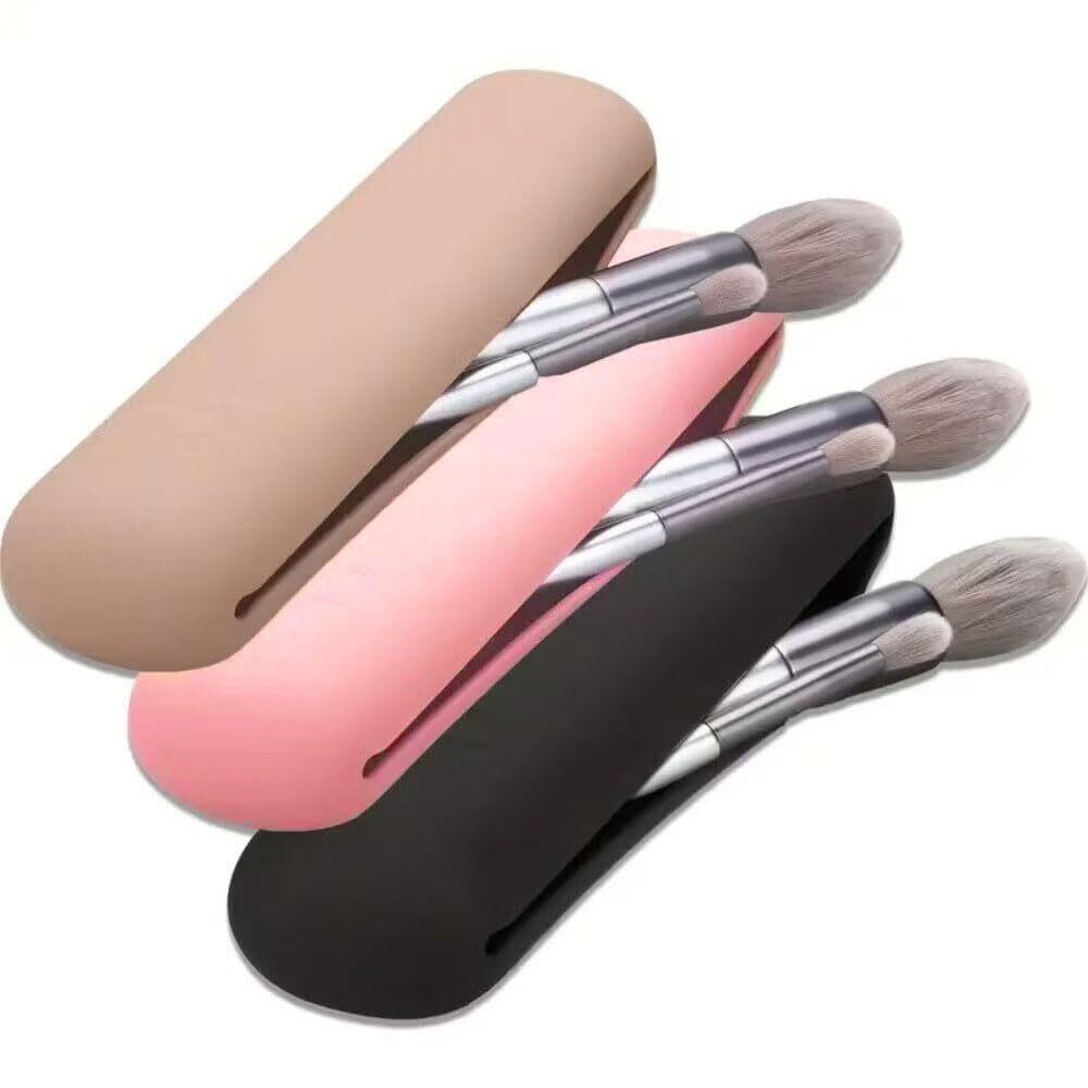 メイクブラシポーチ 携帯用 3個セット カーキ ブラック ライトピンク粧筆ポーチ シリコン製 出張用 収納ケース 持ち運び 携帯用 シリコンケース 磁石なし