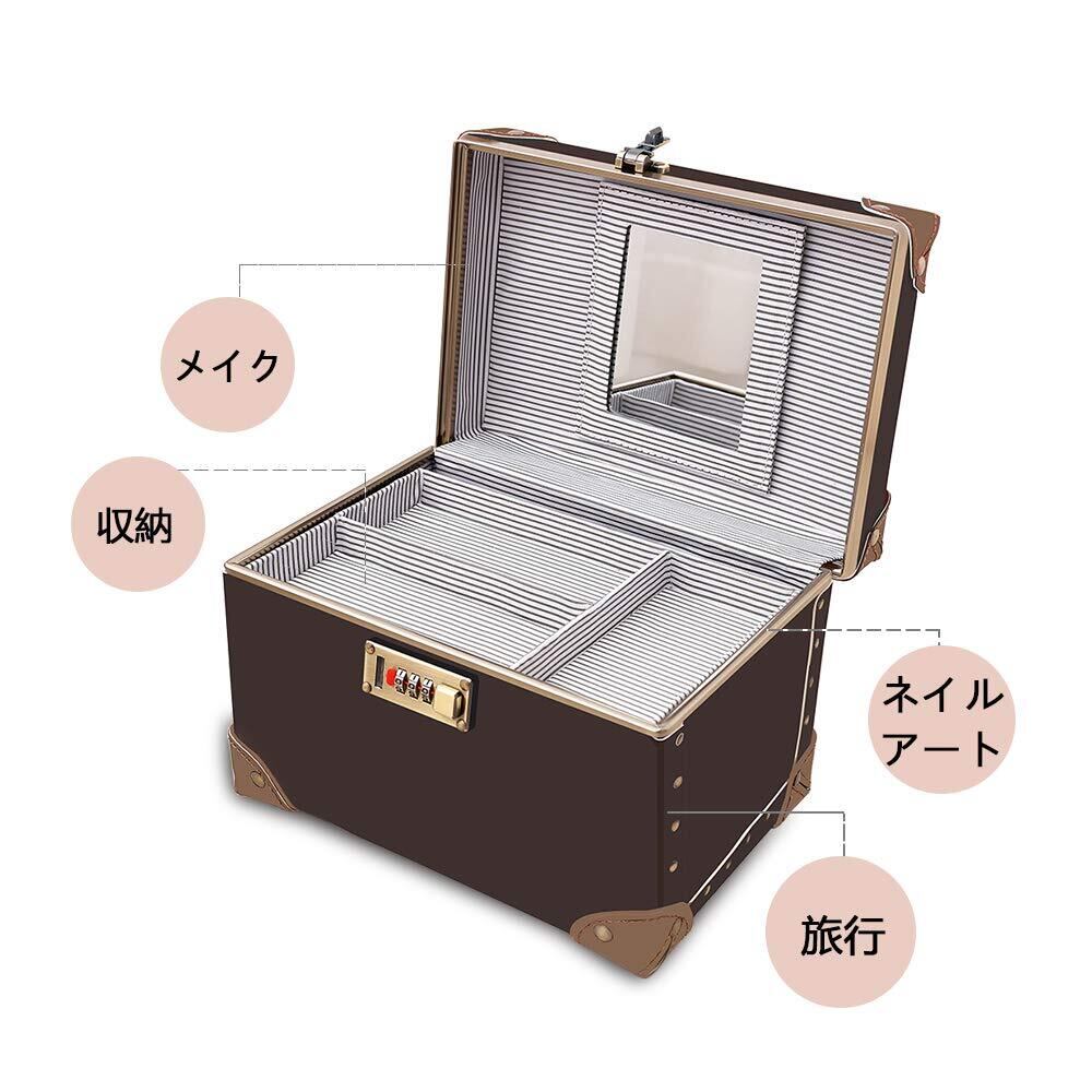 urecity ポータブルメイクアップトレインケース コスメティックオーガナイザーケース レザー収納ボックス コンビネーションロック付き