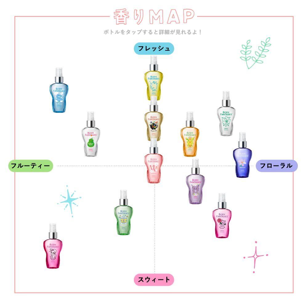 バラエティ豊かなボディファンタジーの8種の香りのラインアップに、近年フレグランス業界では“定番”になりつつある