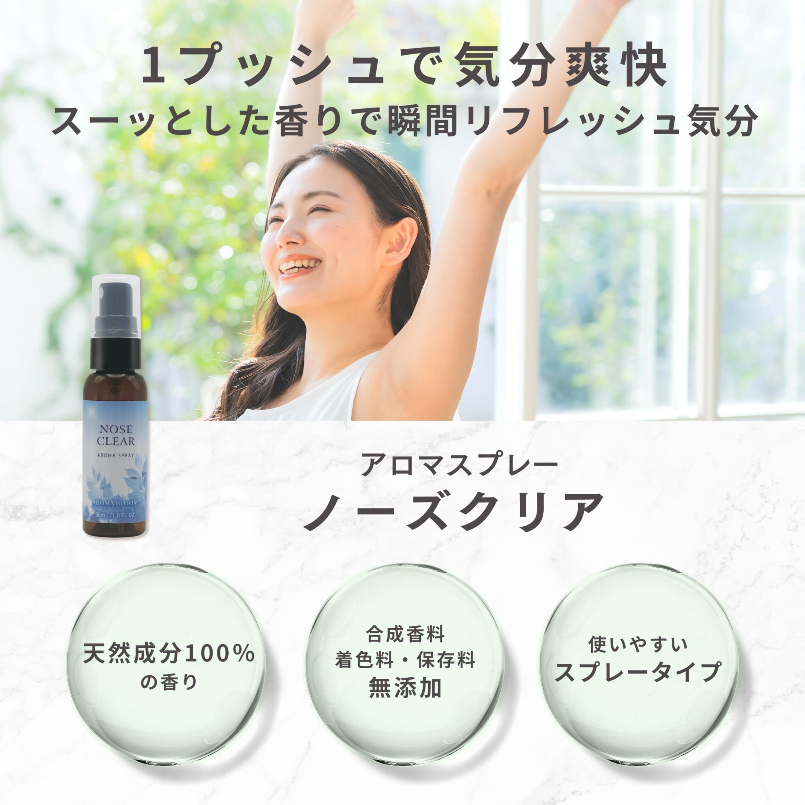 アロマブルーム アロマスプレー ノーズクリア 30mL フレグランススプレー 天然精油100%の香り Aroma Bloom