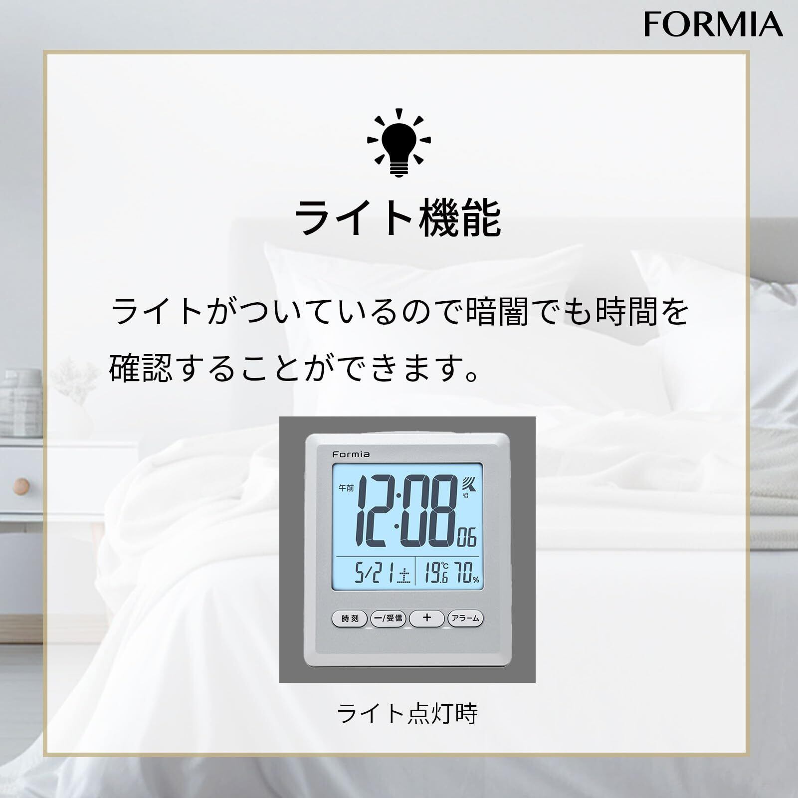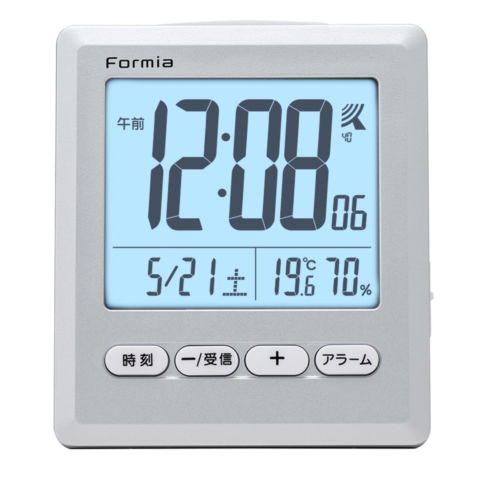 Formia(フォルミア) 電波 目覚まし時計 コンパクト 小型 温度 湿度 温湿度計 日付 デジタル 置き 卓上 保土ヶ谷電子販売 シルバー HT-028RC