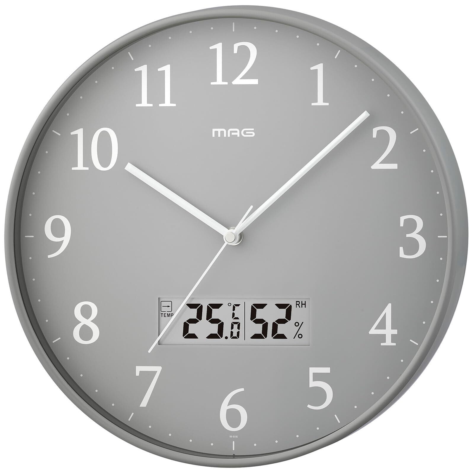 MAG(マグ) 掛け時計 壁掛け時計 アナログ 電波時計 温度計 湿度計 温湿度計 おしゃれ かわいい シンプル インテリア 直径30.0㎝ 夜間秒針停止 グレー グリージョ W-816 GY-Z ノア精密