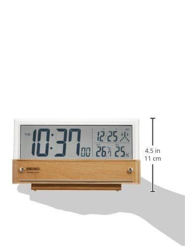 【数量限定】セイコークロック(Seiko Clock) 置き時計 目覚まし時計 電波 デジタル カレンダー 温度湿度表示 シースルー液晶 薄茶木目模様 本体サイズ:10.7×19×4.1cm SQ782B