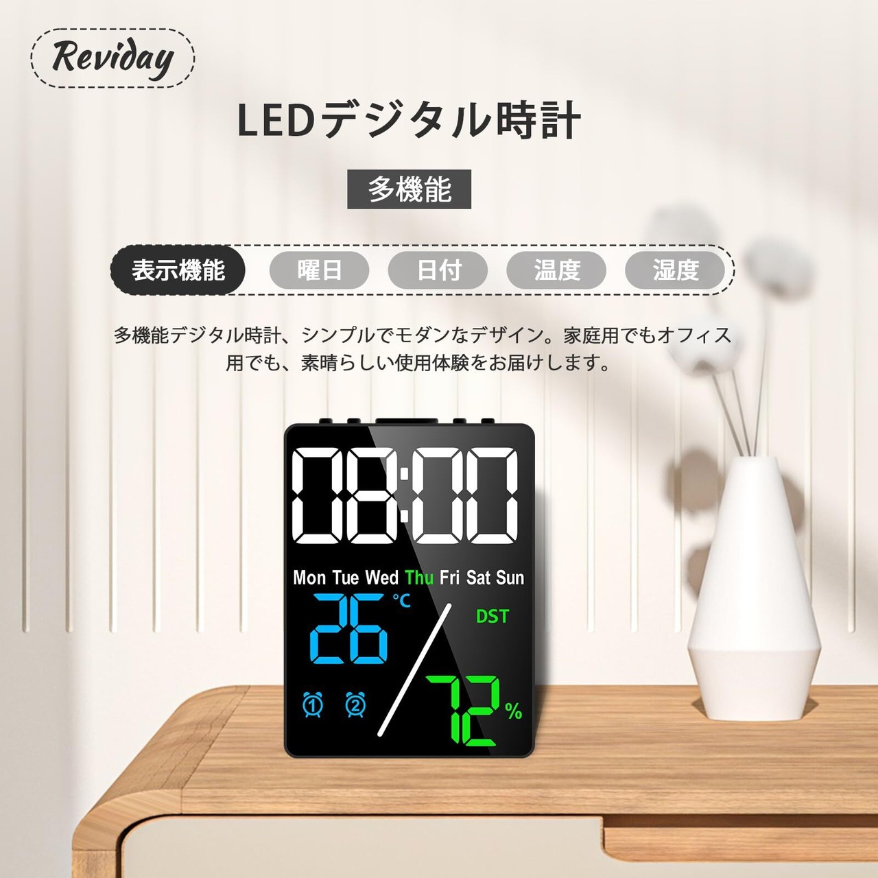【多情報表示】RevidayデジタルLED目覚まし時計は、時間、曜日、温度、湿度を同時に表示できる便利なデザインです。大きなディスプレイで視認性も抜群。さらに、日付ジャンプ表示機能も搭載しており、重要な日を見逃す心配がありません。家庭やオフィスでの使用に最適で、快適な生活をサポートします。シンプルでスタイリッシュなデザインは、どんなインテリアにもぴったり合います。毎日をより便利にしてくれる一品です