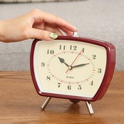 まるで昔のテレビのようなフォルムがかわいいレトロ風な置き時計です。