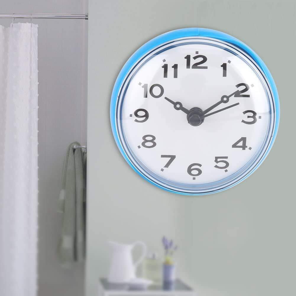 防水時計 壁掛け時計 ウォールクロック 強力 吸盤式 ミニサイズ 防水 バスルームクロック バスルーム時計 ウォータープルーフ時計 お風呂用品 キッチン用(ブルー)