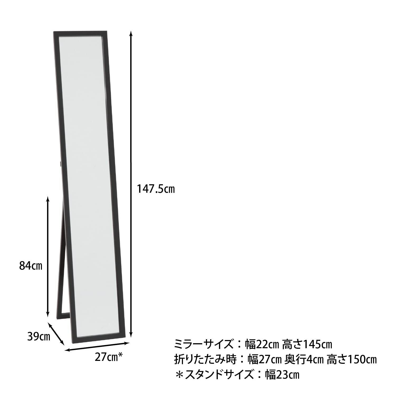 不二貿易 姿見 全身鏡 スタンドミラー 飛散防止加工 ルームミラー 木製 折りたたみ 一人暮らし 単身 幅27×奥行39×高さ147.5cm ブラック 70121