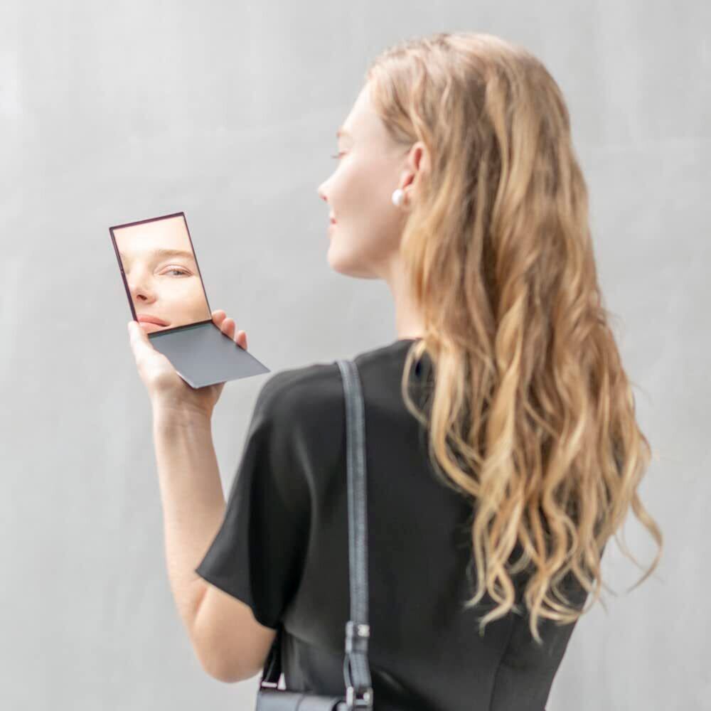 【軽量・コンパクト】従来の折りたたみミラー(当社比)よりも薄く軽いので、場所をとらずコンパクトに収納でき、バッグやポーチに入れても邪魔になりません。旅行やお出かけ時など持ち運びに便利です。カードケースサイズで小さくコンパクトなので、外出先でメイクのチェックをするのに最適です。サイズ8cm×10.8cm、厚み0.7cm、重量約70g