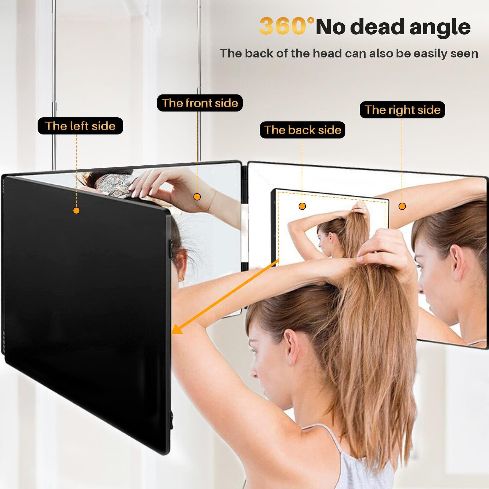 【360°パノラマ3ウェイミラーで完璧な視界】3方向ミラーを広げると、セルフヘアカット、スタイリング、メイクなどの360°フルビューを体験できます。 あらゆる角度からクリアな外観を与えるように設計されたこのセルフカットミラーとシェービングミラーは、シャープなヘアカット、洗練されたスタイル、正確なシェービングなど、あらゆるディテールを完璧にするのに役立ちます。