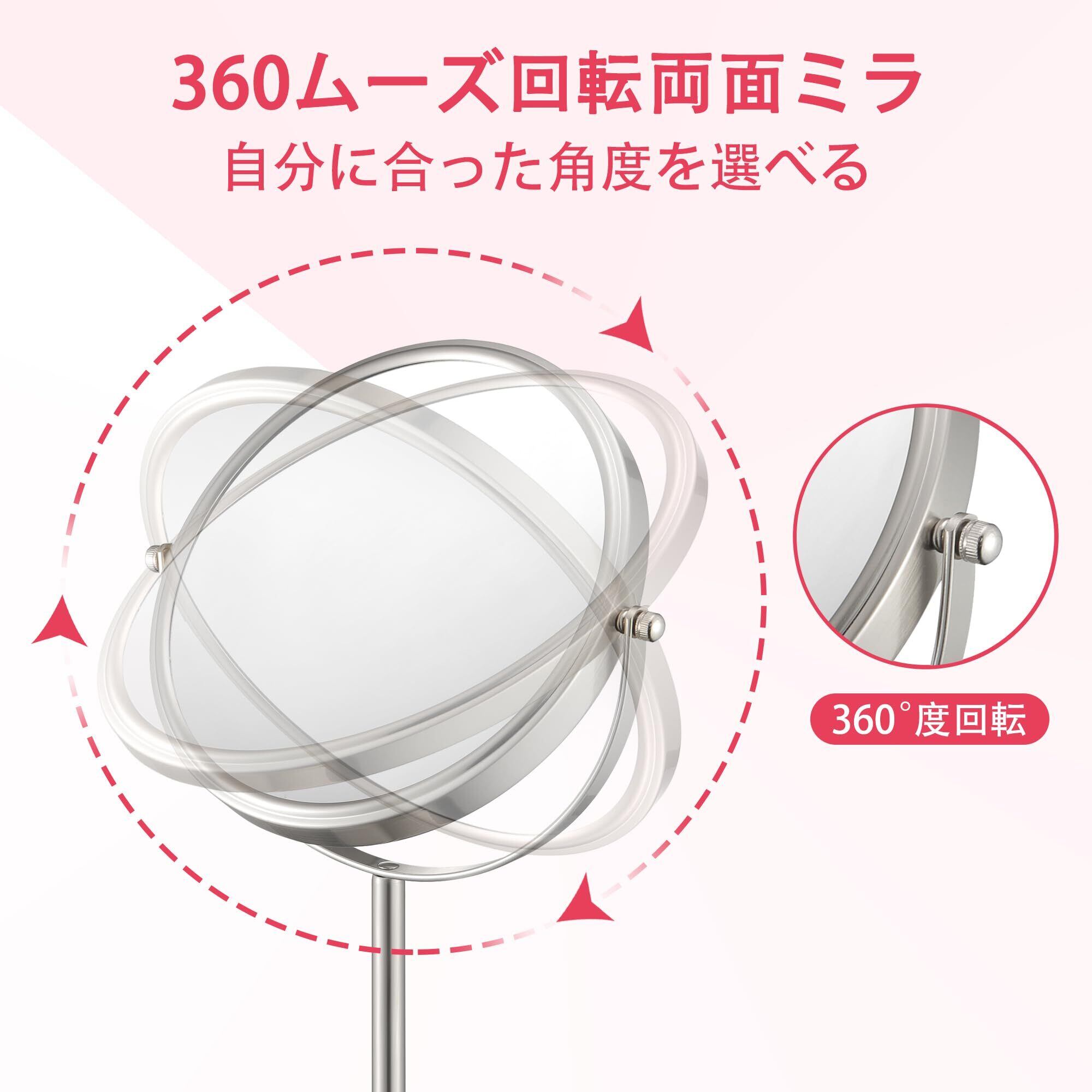 【360度回転&滑り止めベース】卓上化粧鏡は360度回転することができ、化粧ニーズに合わせて両面鏡を簡単に切り替えることができます。鏡は高品質ネジと静音技術を使用しているので、どんな角度に調節しても騒音や揺れがなく、視線に合わせて鏡の角度を調整することができ、身長の違う人が使いやすい設計になっています。同時に拡大鏡の台座には加重台座とEVA滑り止めマットを配置し、鏡の安定性をし、机を傷つけないようにした。