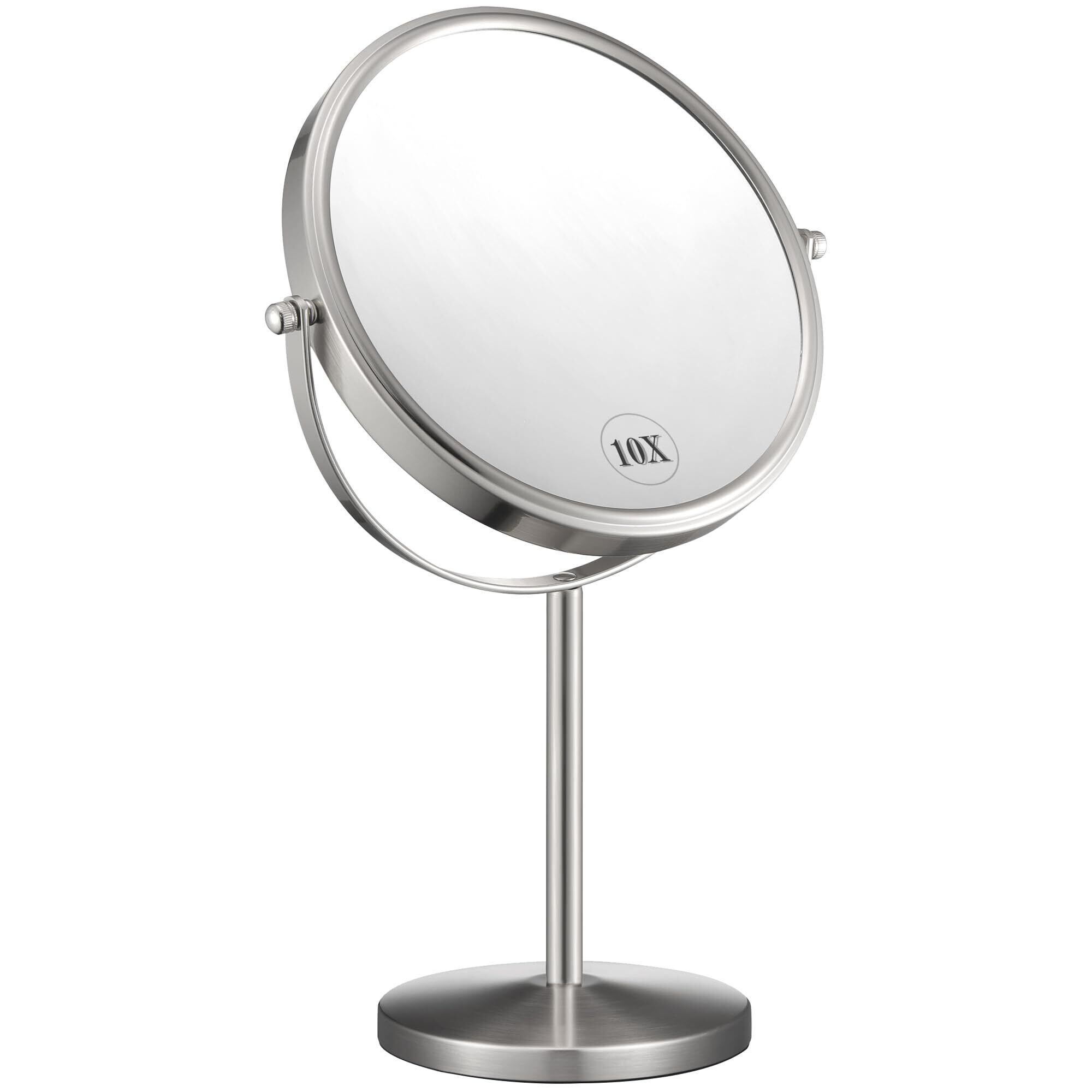 LunarCorky 鏡 卓上 女優ミラー 8インチ化粧鏡 等倍&10倍拡大鏡 HD両面鏡 メイク 360度回転 スタンドミラー 取り外し設計 すべり止め加重台座 鏡面20cm 人気プレゼント 浴室用 (色 : ニッヶル,円型)