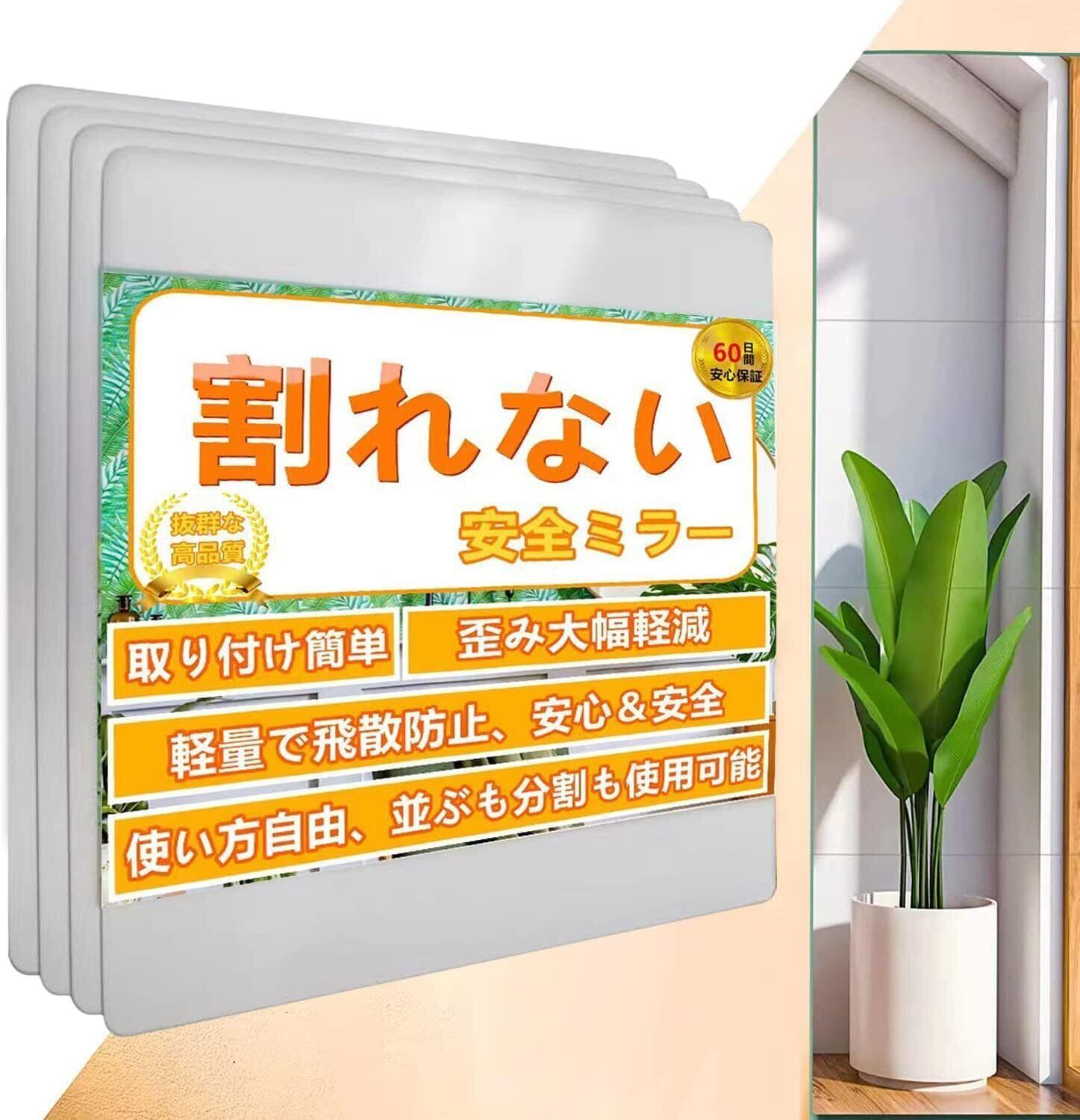 【30cm×30cm】4枚セット 割れない鏡 全身 貼る 全身鏡 自由組合せ どこでも貼れる割れない鏡 ドアの裏やクローゼットにも 姿見鏡 壁掛け ミラー 壁掛け 浴室