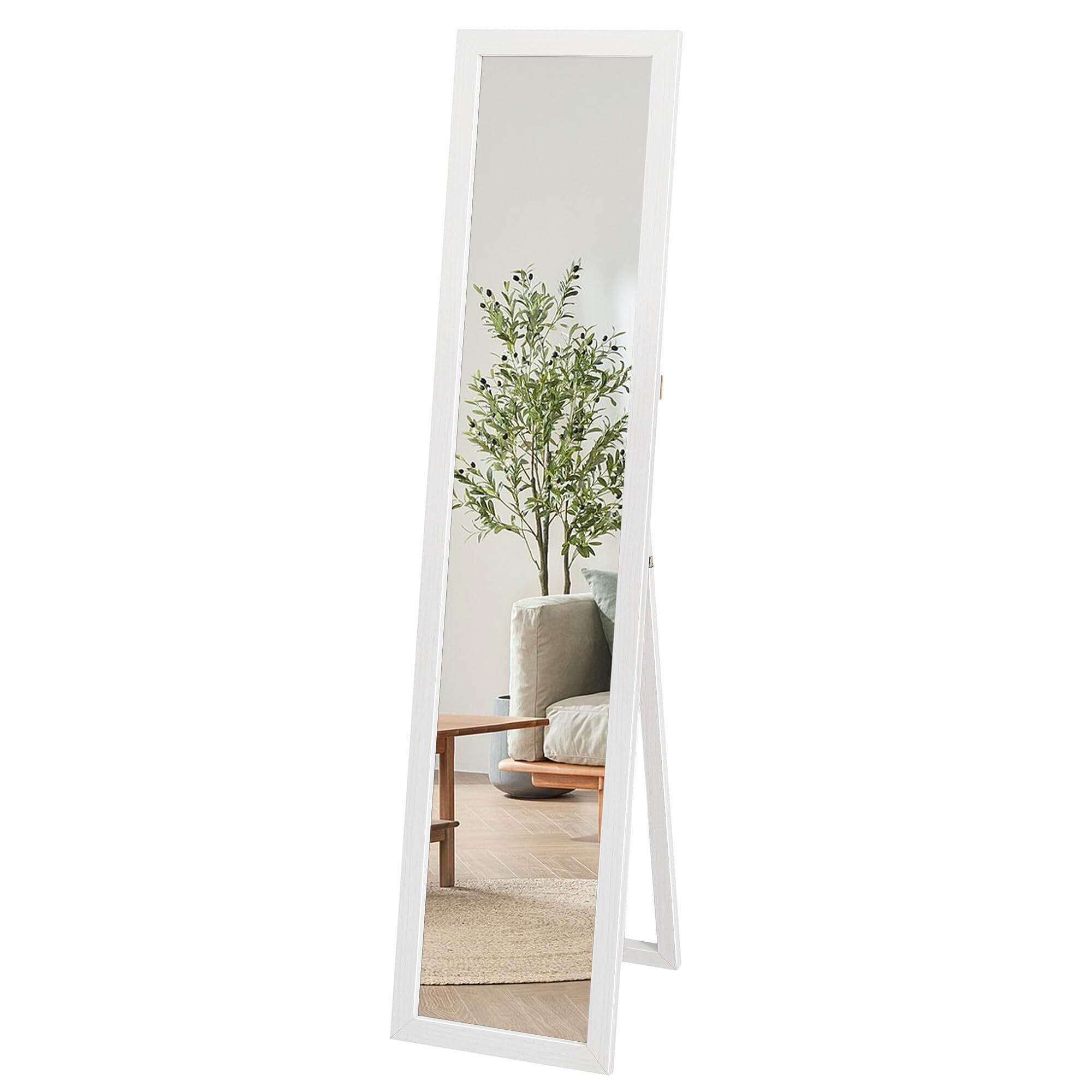 【在庫処分】VECELO 姿見 全身鏡 スタンドミラー 117*27cm ホワイト 全身ミラー すがた鏡 折りたたみ 立て掛け 木製フレーム 飛散防止加工 シンプル