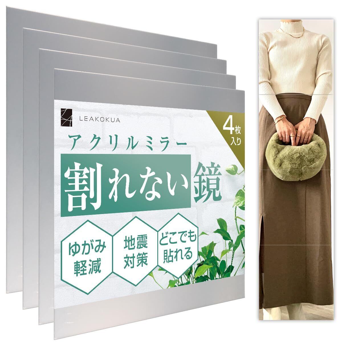 LEAKOKUA 割れない鏡 地震対策 【お店でも使われています】 鏡 全身鏡 姿見 アクリルミラー (30cm×30cm) (4枚セット)