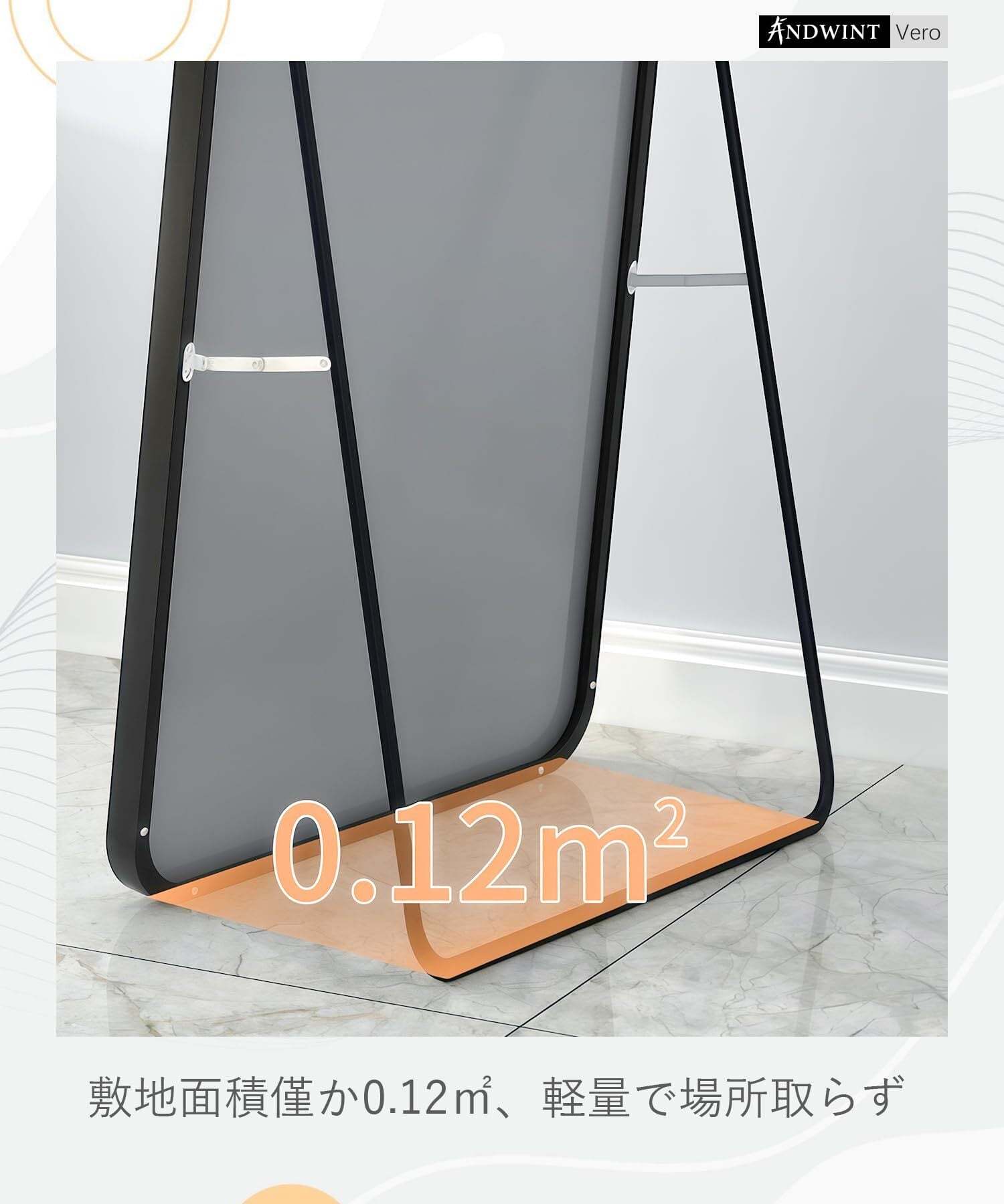 【新着商品】ANDWINT Vero 姿見鏡 全身鏡 幅36×高さ143cm 大型 スタンド鏡 持ち運び便利 飛散防止 壁掛けミラー 壁掛け鏡 スタイルチェック ブラック