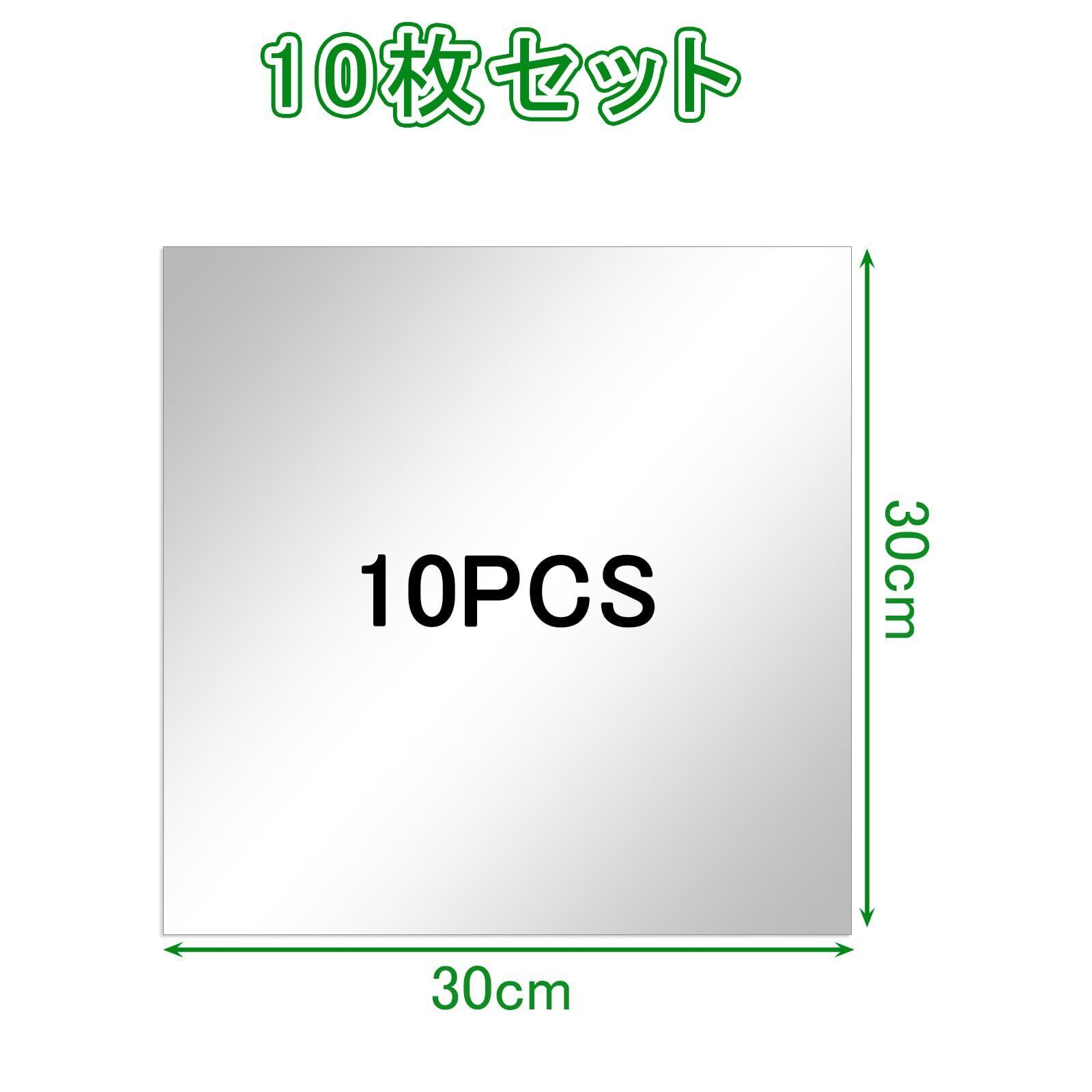やぬき 割れない鏡 【10枚セット】 姿見鏡 30×30cm 鏡 全身鏡 貼る鏡 自由に組立て可能 壁掛け鏡 ミラー 浴室 穴あけ不要 DIY 両面テープ付き お風呂 全身 軽量