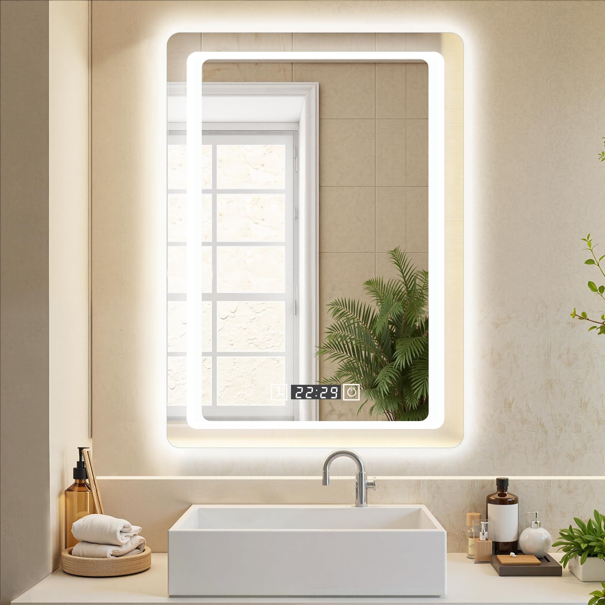 Bacoer ミラー 鏡 LED 壁掛け 照明付き 化粧鏡 洗面所 洗面台 おしゃれ 暖色 白色LED内蔵 色温度3000-6000K調節可能 (50*70CM 縦掛け)