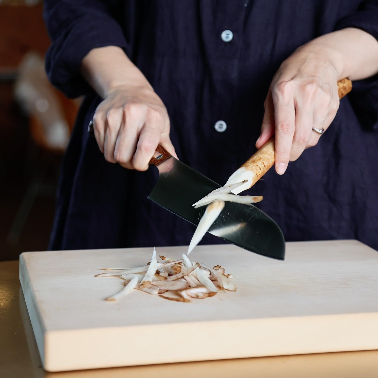 【商品情報】三徳は読んで字のごとく、“肉”、“魚”、“野菜”を切れることが由来の日本の万能包丁。「和 NAGOMI」の三徳包丁は切れ味が鋭く、ハンドルに段差がないので手とひとつになる様なグリップ感。一つひとつが職人の手作業によるものです。長時間の使用でも疲れにくく、美しいデザインは毎日のお料理をより楽しくしてくれます。