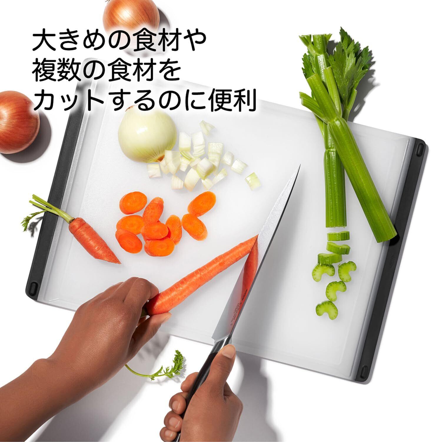 OXO オクソー まな板 カッティングボード 樹脂製 Lサイズ 26.4×37.5cm 食器洗浄 乾燥機 対応 漂白剤 使用可 滑り止め付き 水分をキャッチする溝 両面使える
