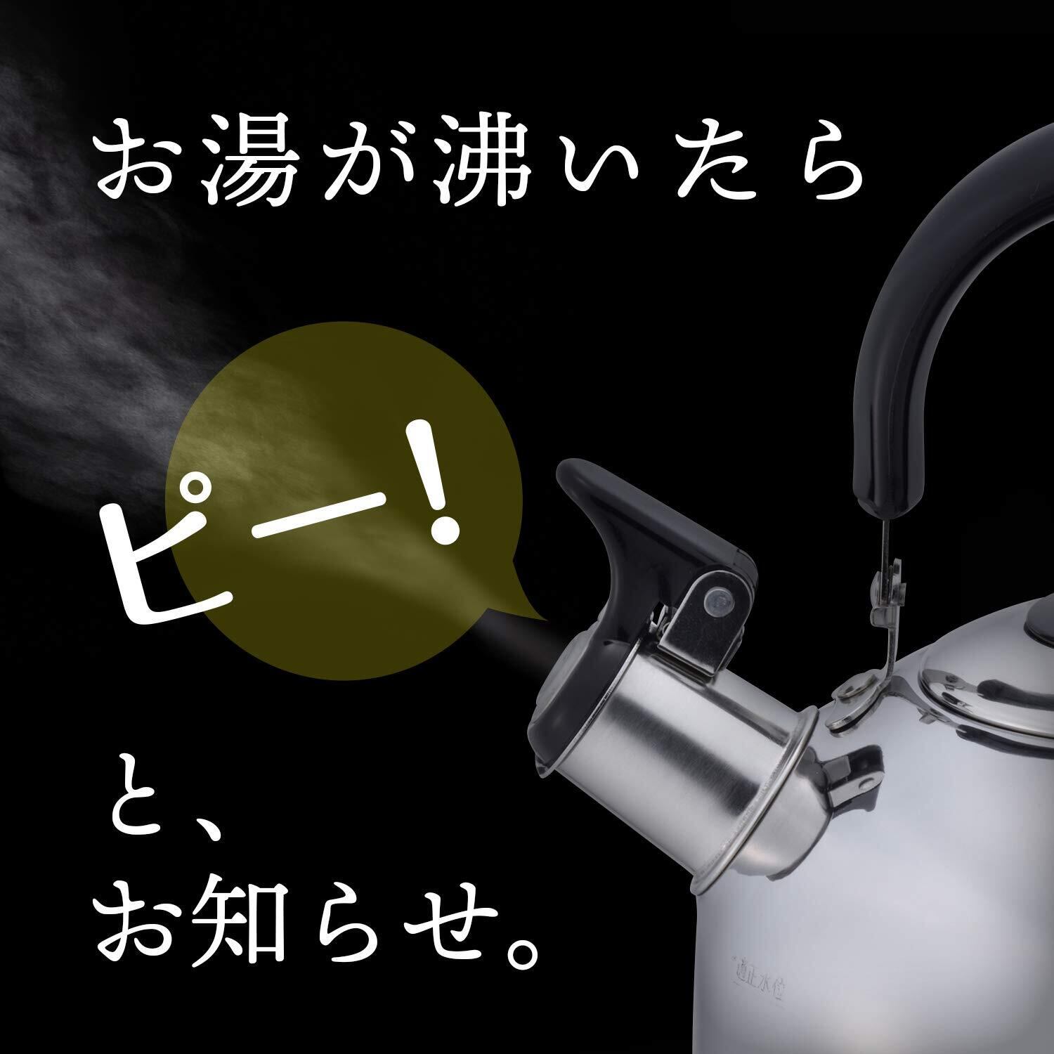 お湯が沸いたら笛で知らせてくれます。ガスコンロでもIHクッキングヒーターでも使えます。