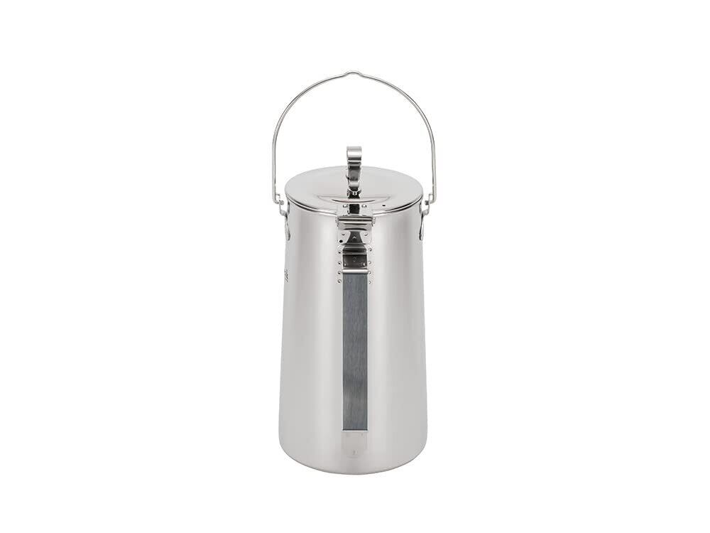 焚火や炭火の高カロリーな熱にも対応する縦長のクラシックなフォルムのケトルです。上部に吊り下げ用のハンドルも備えキャンプシーンに対応いたします。