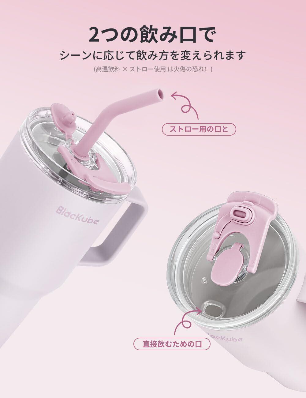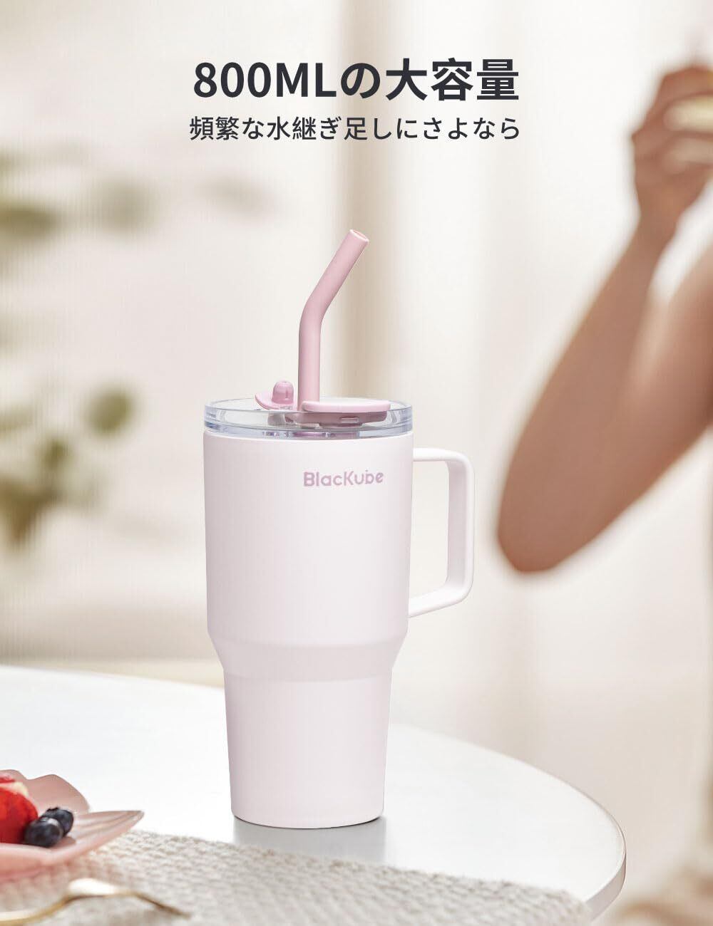 【新着商品】Blackube セラミック タンブラー ストロー付き 取っ手付ケトル 800ml コーヒー 真空クエンチャー 保温保冷 真空断熱広口 大容量 直飲み ホームオフィ アウトドア 女の子 男の子、