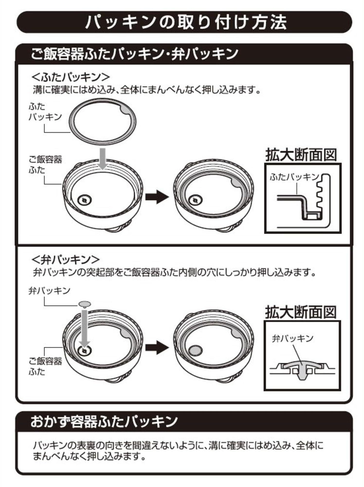 ご飯容器本体・ご飯容器ふたは、つけ置き洗い等の丸洗いはしないでください。