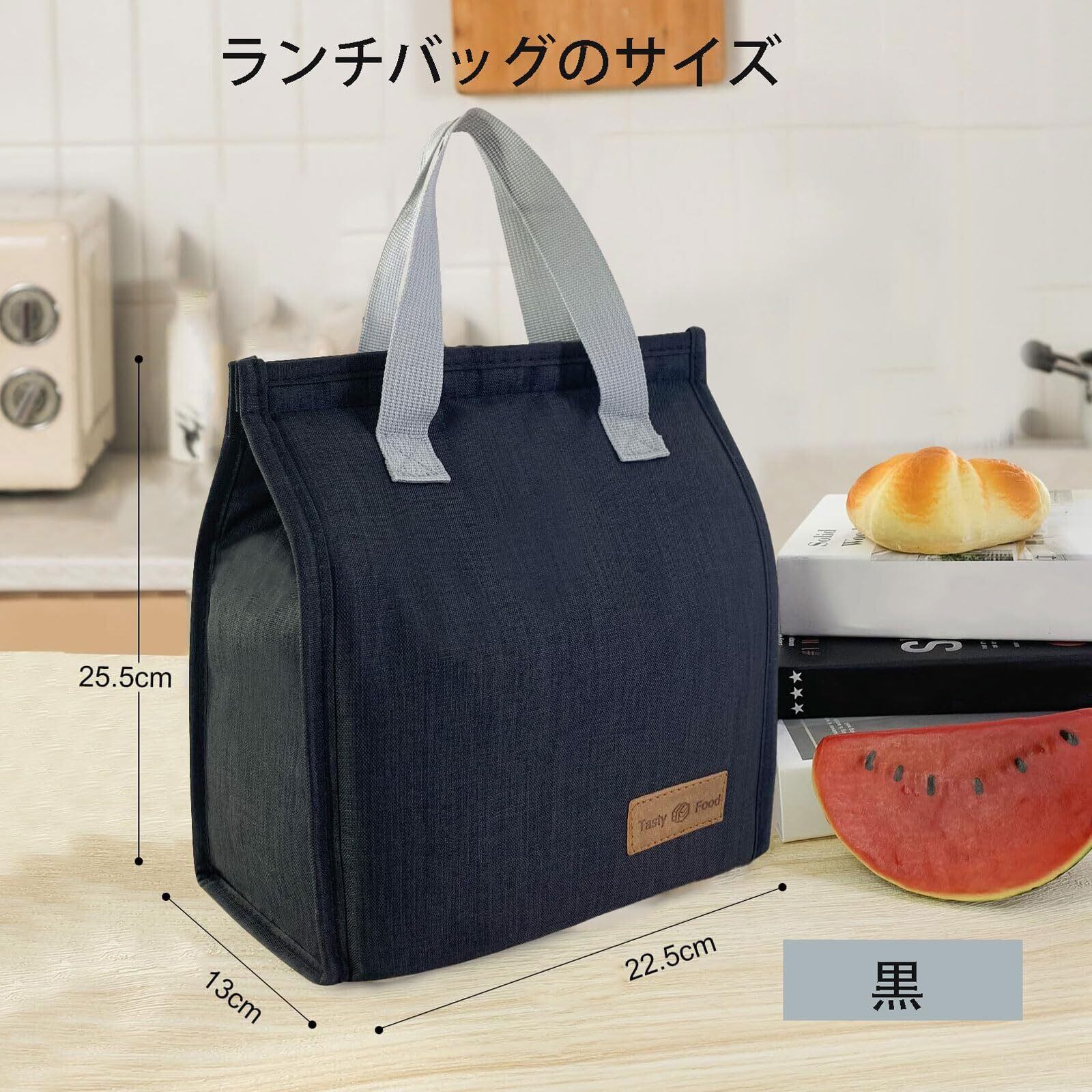 ShuaWdk ランチバッグ 保冷バッグ 弁当袋 断熱袋 厚手保温 保温バッグ 漏れ防止 再利用可能な断熱バッグ シンプルな弁当トート 仕事 オフィス ピクニック 通勤 通学 旅行用 (黒)