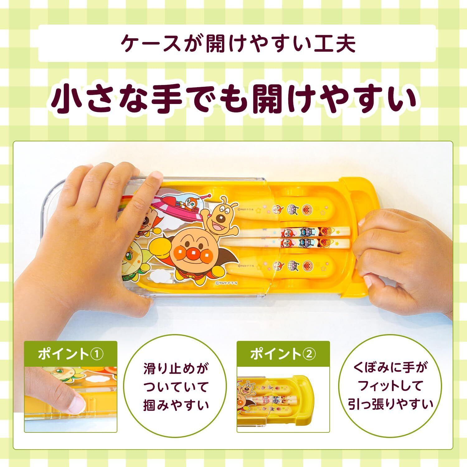 レック アンパンマン 抗菌 スライド 3点セット (フォーク スプーン 竹箸) イエロー/SIAA抗菌/なまえスペース付き/