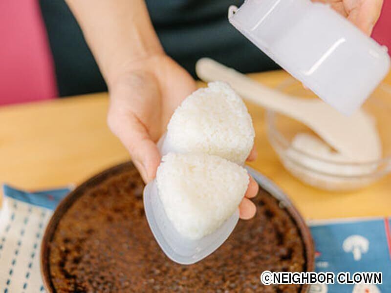 違う味で作ったり、海苔をセットして海苔巻きおにぎりを作ったりすることも。手で直接触れないので、衛生的かつ、炊き立てのアツアツご飯でも作ることができるのもポイントです。