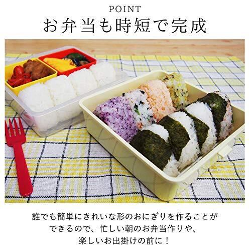 忙しい朝のお弁当作りや、楽しいお出かけ前に! お子様も一緒に仲良くランチの準備! 誰でも簡単に均一なきれいな形のおにぎりが作れます。 海苔を巻くこともでき、手を汚さずに作ることができます。友達とのパーティーや集会時など短時間でたくさん作れるので便利!