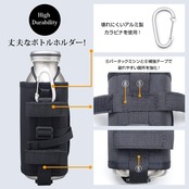 【概要】バックパックのショルダーベルトなどに固定できる軽量ボトルホルダーです。幅広いサイズのボトルに対応します。