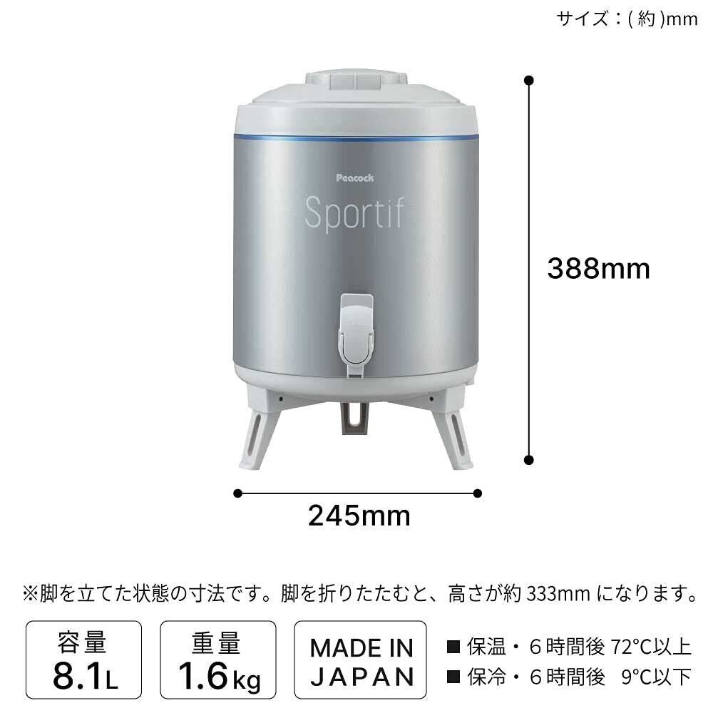 ピーコック魔法瓶工業(The-peacock) ピーコック ウォータージャグ 8.1L 日本製 保冷 保温 洗いやすい 広口 保冷力 大容量 軽量 キーパー 注ぎやすい レバー式 ジャグ シルバー INC-80 SL