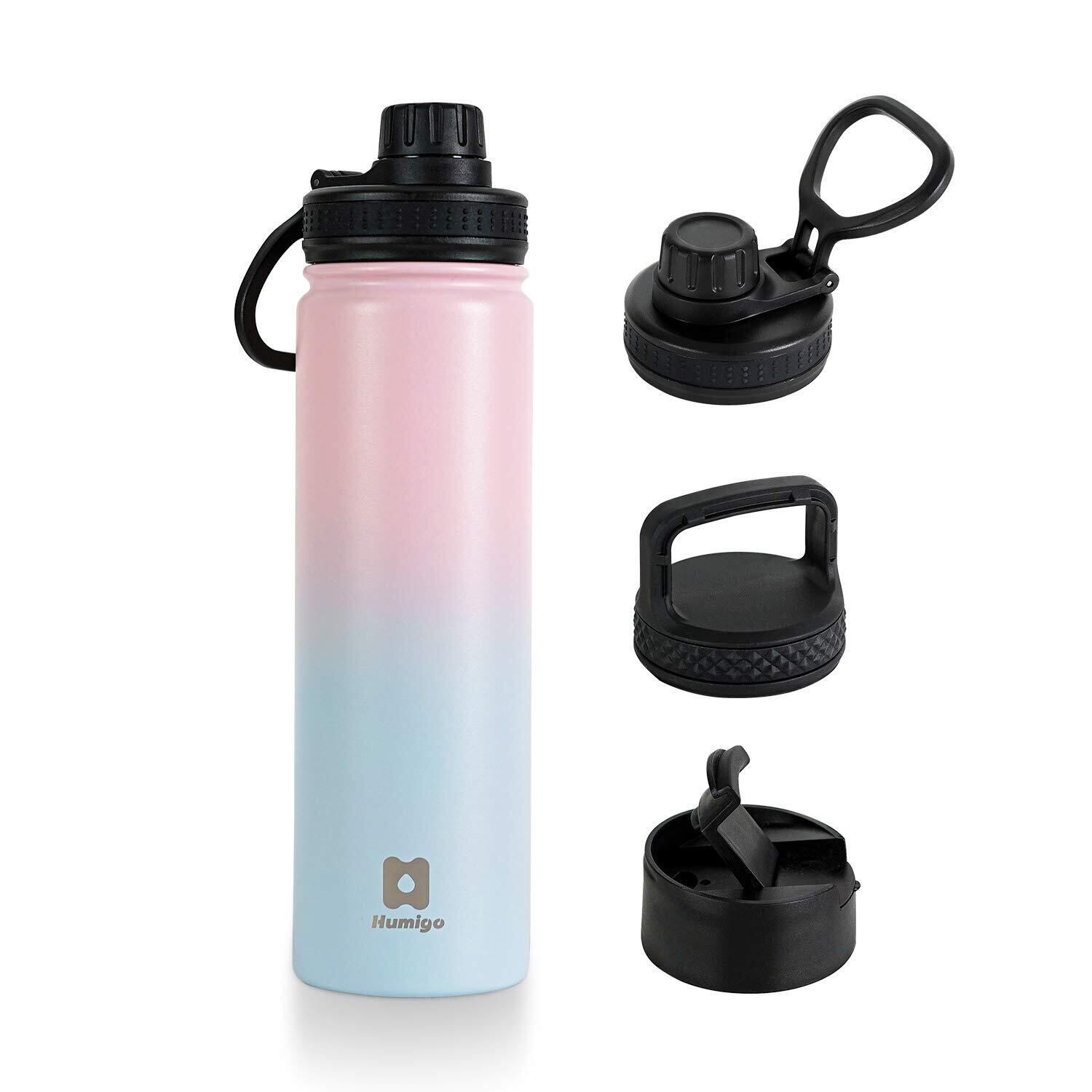 HUMIGO 3種の機能性蓋付き ステンレス製真空断熱ボトル 650ml スポーツボトル 保温・保冷対応 スポーツ&日常用 防漏設計
