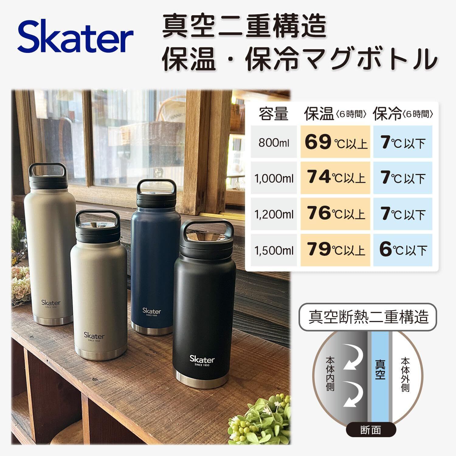 スケーター(Skater) 保温 保冷 ステンレス マグボトル 1500ml スクリューハンドル付 Skater シルバー STSC15-A