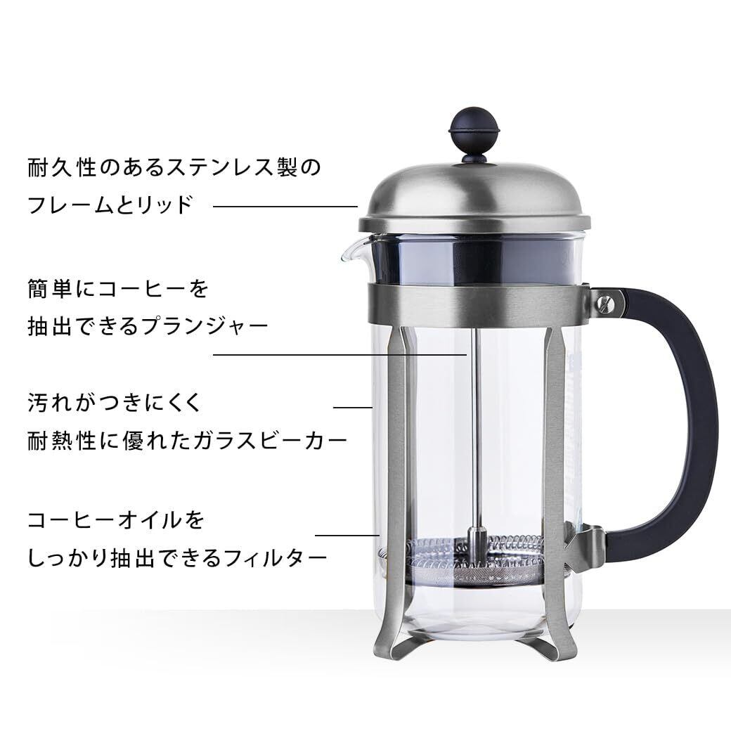 BODUM ボダム コーヒーメーカー コーヒープレス CHAMBORD シャンボール フレンチプレス コーヒーメーカー 350ml シルバー ステンレスフィルター ガラスビーカー 浸漬式 コーヒー 【正規品】 1923-16