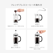 フレンチプレスは、最もコーヒー豆の成分を抽出するのに適した92℃~96℃のお湯の温度を目安に、ゆっくりと豆の膨らみを確かめるようにお湯を注ぐことで、コーヒー豆の旨みや香り、おいしさに必要な豆の油分(コーヒーオイル)を余すことなく抽出します。