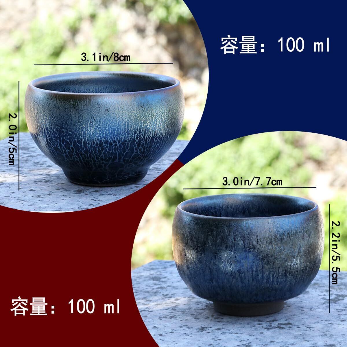 【商品のサイズ】この天目茶碗は、家族やパーティーの飲み物に適した2つの仕様から選択でき、茶器は陶器で作られており、滑らかな質感と絶妙な色合いが特徴です。
