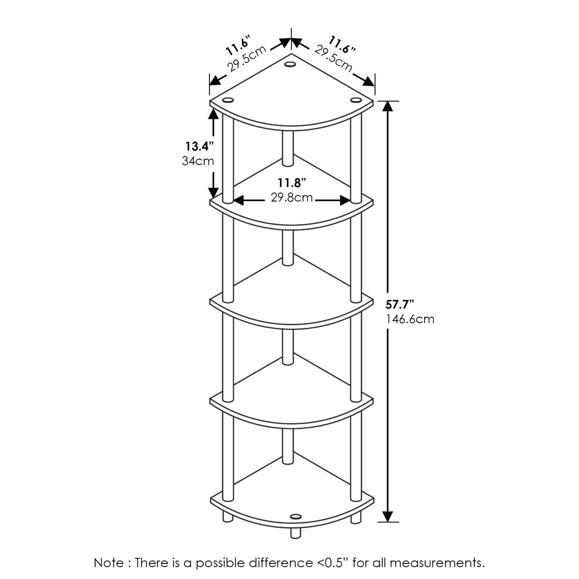 フリノ(Furinno) 5段コーナーシェルフ・コーナーラック アンバーパイン/ブラック Turn-N-Tube 高さ146.6×幅29.5×奥行29.5cm 【日本正規輸入品】 99811APBK