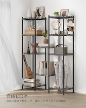【棚あたり調節可能・自由にDIY】棚一枚の高さは置物によって調整可能、キッチン収納ラックとしても、洗面所収納ラックとしても、リビングルームの収納にも、自由にDIY出来ます