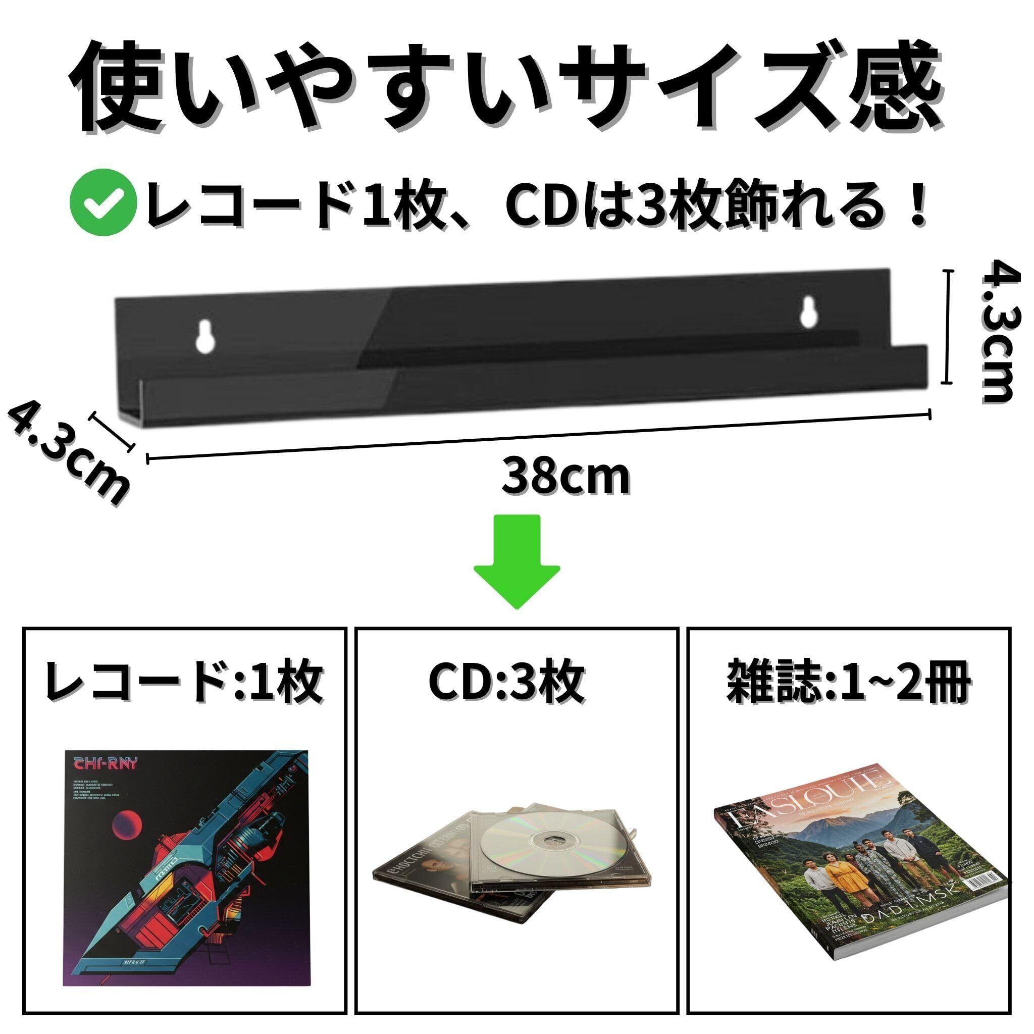 bath&bath レコード レコードラック 壁 幅38cm 壁掛け 賃貸可能 選べる取付方法 ピンorネジorテープ 石膏ボード 収納 アクリル (透明 2個)