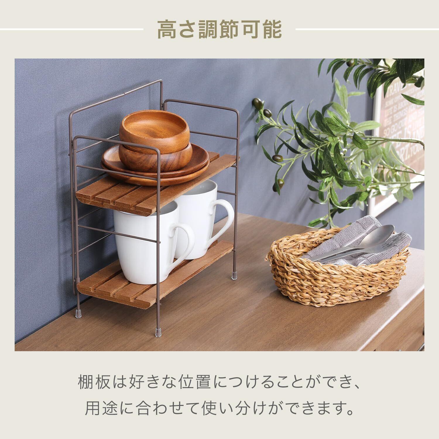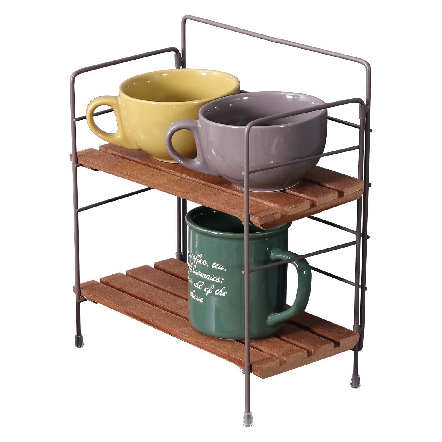 不二貿易 インテリアラック 棚 ブラック×ブラウン 折りたたみ 卓上収納 スチールフレーム リーブル 38497