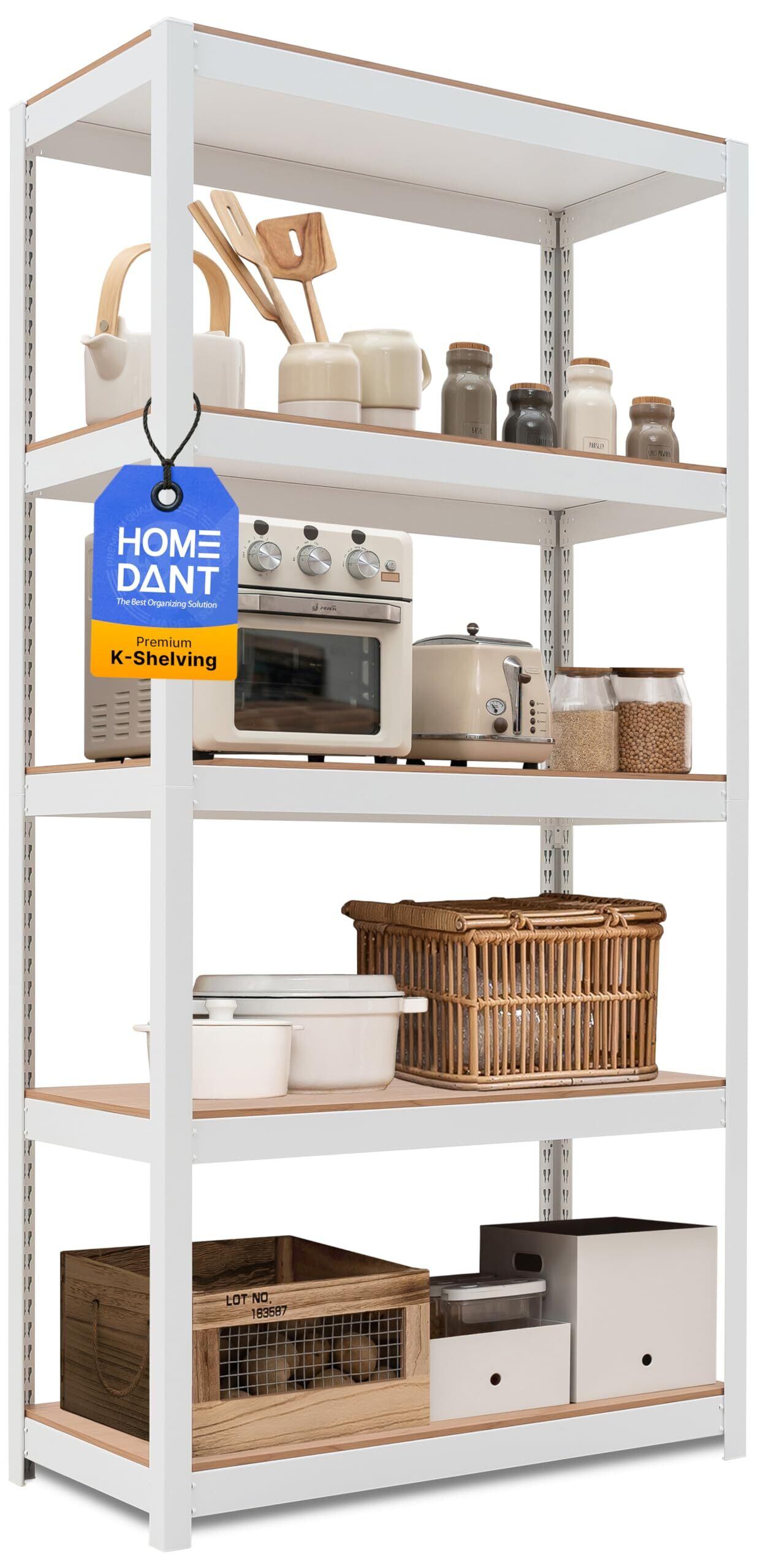 HOMEDANT House 組立簡単 ラミネート スチールラック キッチン 5段 幅90 奥行40 高さ180 ホワイト ホームダント 高さ調整可能 棚 収納棚 メタルラック クローゼット ガラージ オフィス 業務用