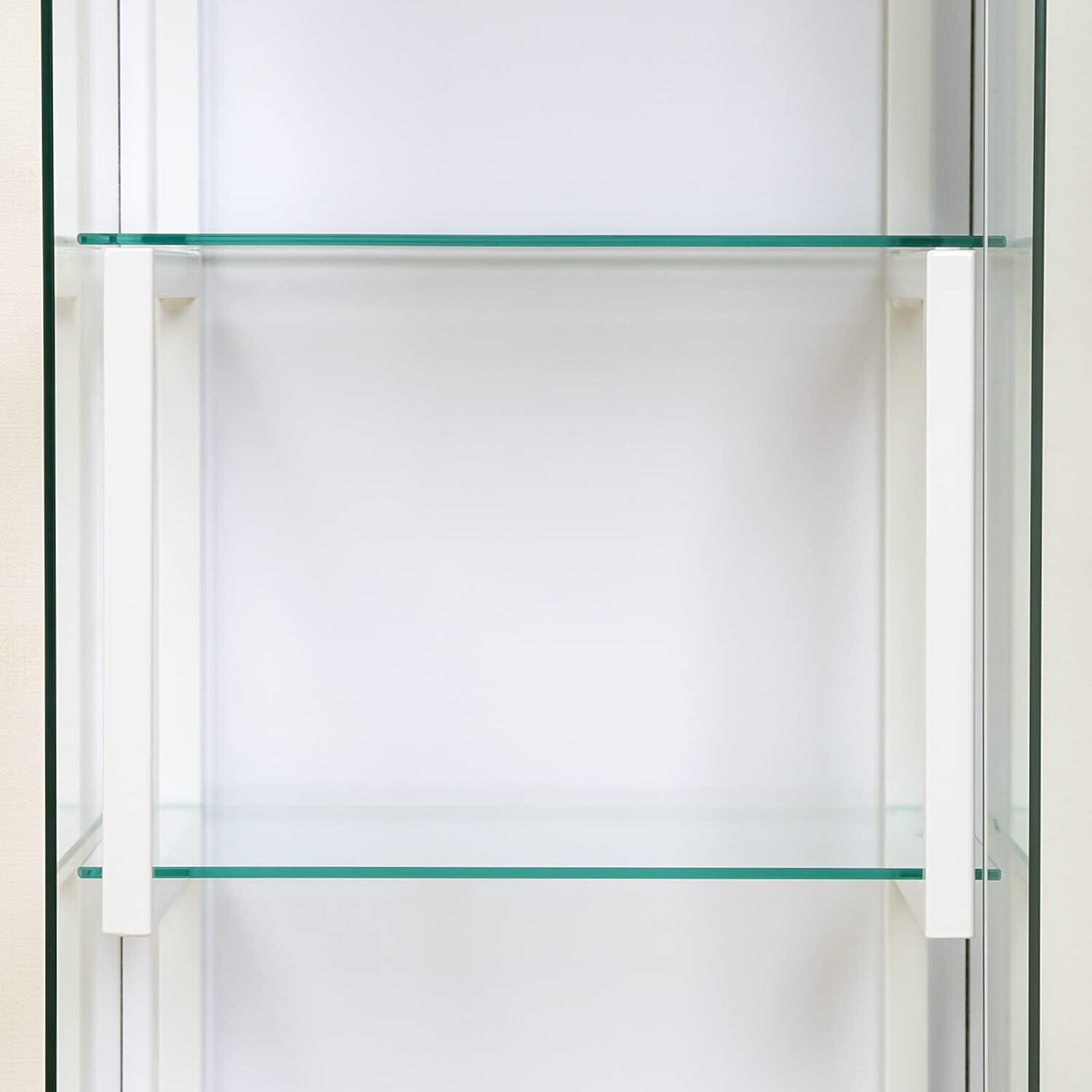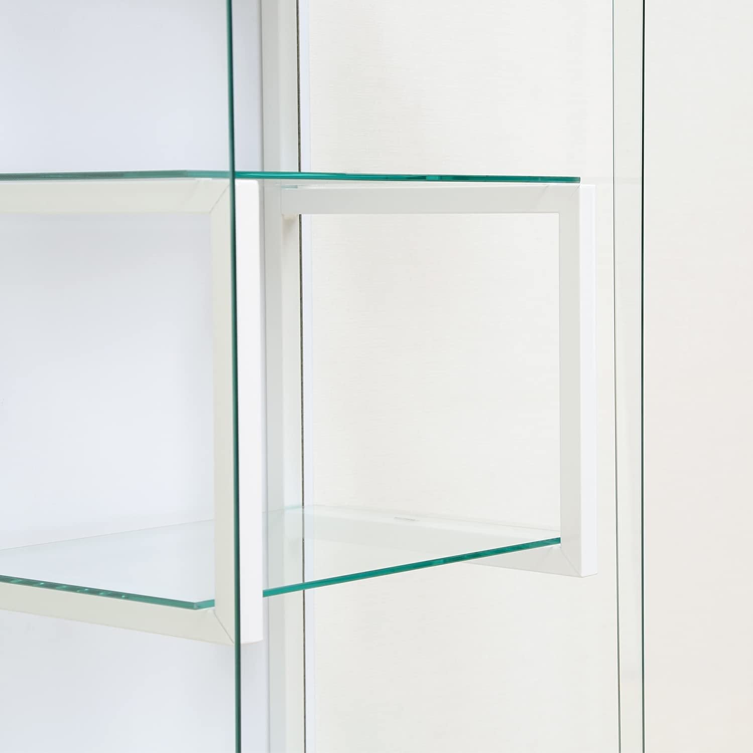 お気に入りのフィギュアやアクセサリーをより美しく見せてくれる強化ガラスケース。大切なコレクションを埃から守り、いつも綺麗な状態で展示できます。360度どの角度からでも見える全面ガラスタイプです。扉はマグネット式で手軽に開閉できます。すべてホワイトで統一され、S型のフレームでスタイリッシュかつシンプルなデザイン。壁に固定できるパーツが付属しています。